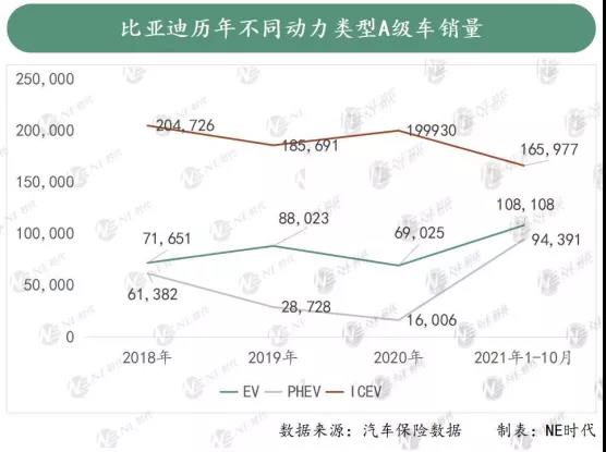 而這將近10萬的A級PHEV車型中,有89326臺是比亞迪DMI車型,其中秦Plus 55070輛,宋Plus 34256輛。 以秦Plus為例,作為一款標準的A級車,除了可以汽油驅動,還提供55km和120km的純電續(xù)航,但是補貼后的售價只有10.58-14.58萬元,這種車放在目前的燃油車市場跟很多車型相比也非常有優(yōu)勢,更何況還是一款PHEV車型。10個月創(chuàng)造5.5萬銷量非常合理。 還有一款比較典型的就是宋Plus,插混版前十個月銷量比燃油版還多出將近900臺。前者價格區(qū)間在14.68-19.98萬元,后者11.58-14.38萬元之間,就汽車保險數(shù)據(jù)來看,插混版本主要起量的是14-16萬之間的這兩款,這跟燃油版的高配版差價非常小,所以在價格上還是非常有優(yōu)勢的。 不僅是A級車,在比亞迪體系里面,B級車唐PHEV低配版與燃油版車型價差也拉得很近,并且以高性價比完勝EV版銷量。