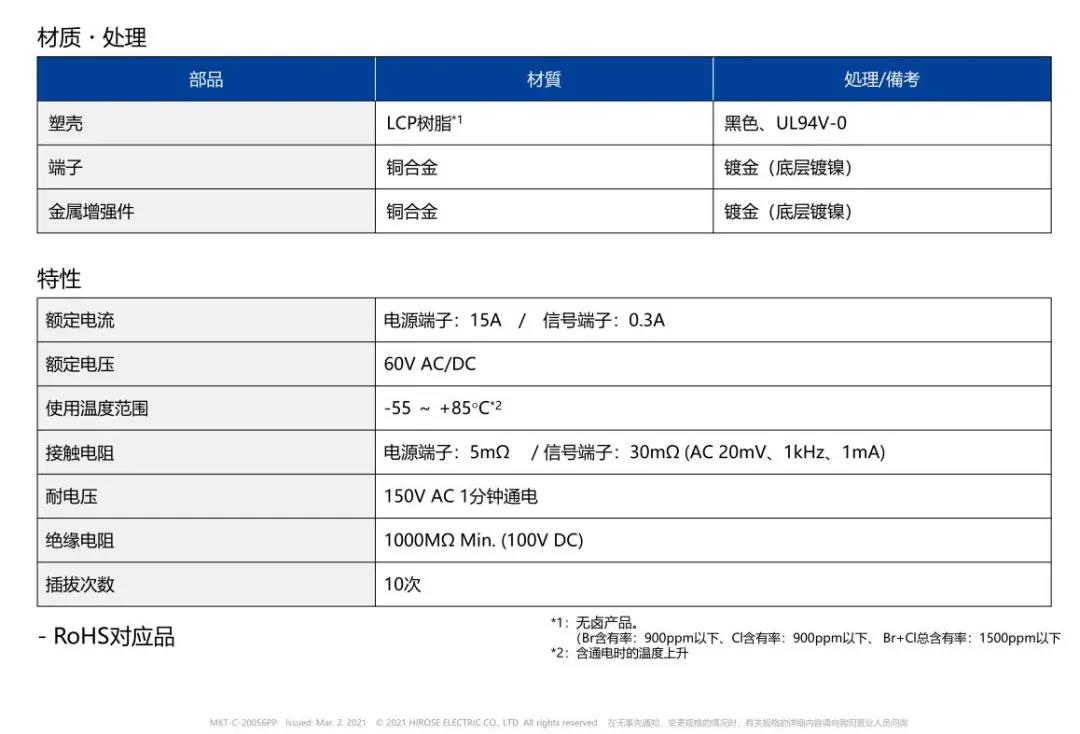 - 額定電流:支持電源端子15A、信號端子0.3A