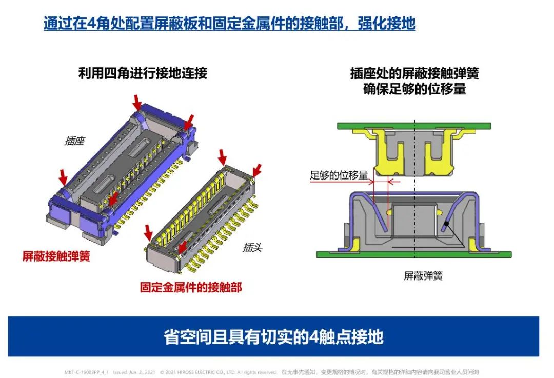 切實的接地構(gòu)造 通過接地實現(xiàn)優(yōu)越的EMI對策 進(jìn)一步強(qiáng)化接地 檢查用連接器